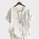 Ova bluza donosi savršen balans između ležernosti i elegancije. Asimetrični raspored gumba daje joj moderan i poseban izgled, dok lagani materijal osigurava prozračnost i udobnost tijekom cijelog dana. Idealna je za svakodnevne kombinacije, ali i za posebne prilike kada želite izgledati drugačije i sofisticirano.