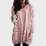 Riley - Ispisani Udobni Pulover je tvoj novi omiljeni komad za ležernu eleganciju. S valovitim rubom, predivnim cvjetnim vezom i oversized siluetom, spaja luksuzne detalje s svakodnevnom udobnošću.