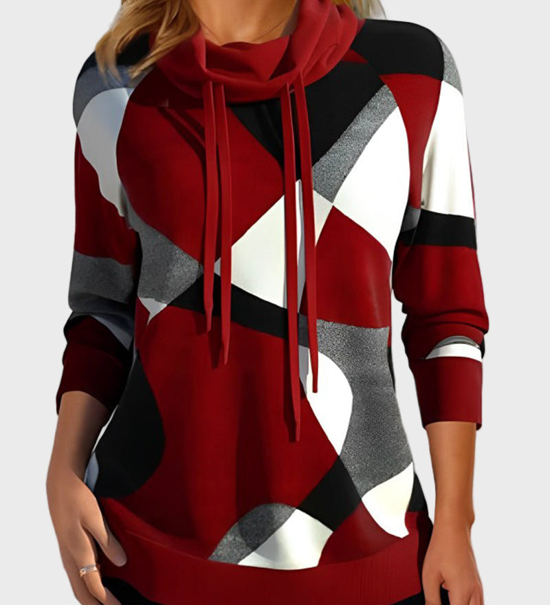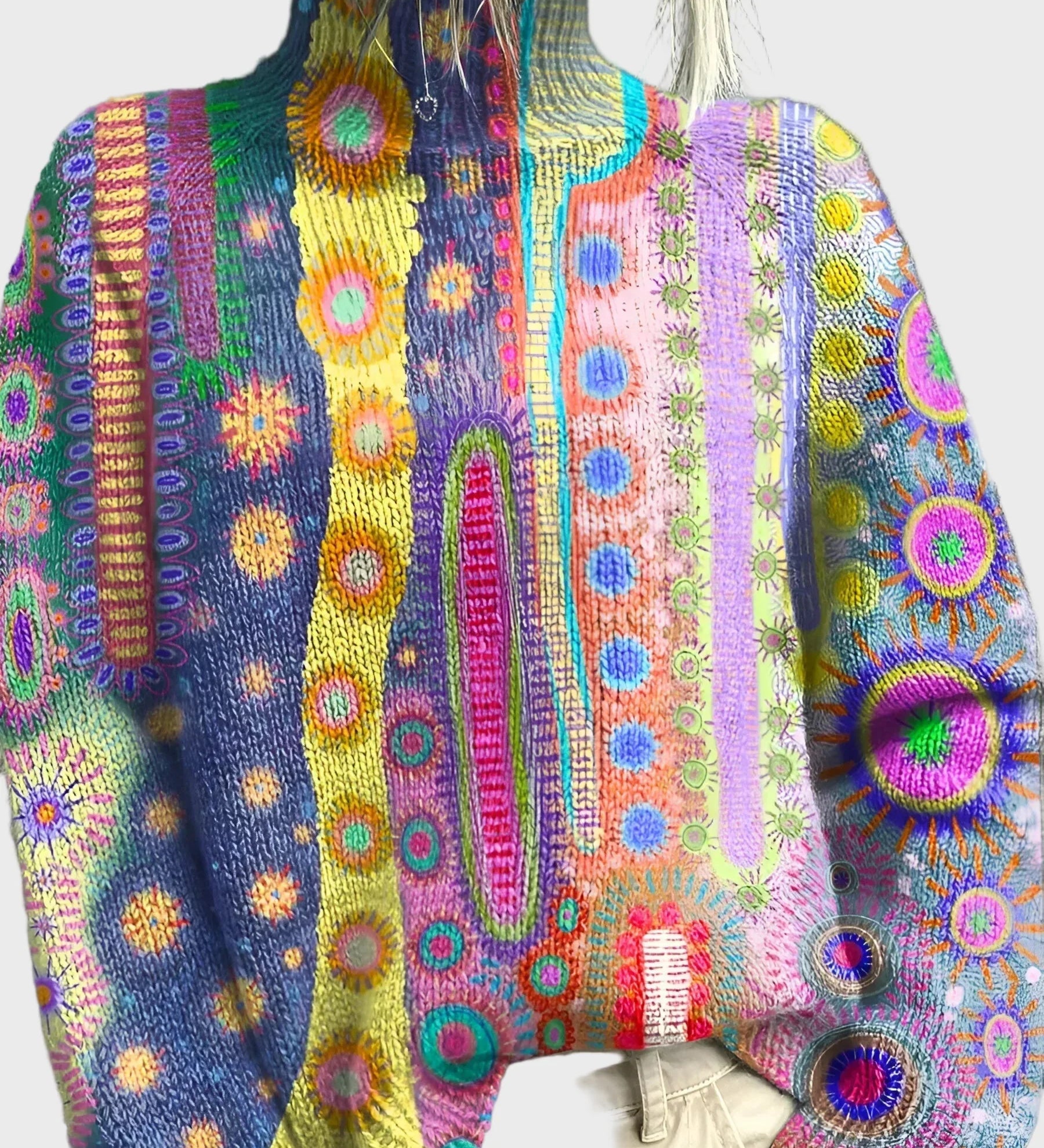 Pletena dukserica s umjetničkim dizajnom i kapuljačom