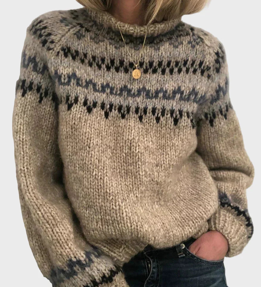 Pleteni Džemper s Vintage Žakard Uzorkom