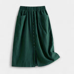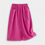 Prirodna tekstura i nenametljiv stil u suknji koja kombinira retro šarm s svakodnevnom praktičnošću. Visoki struk obavija žensku siluetu, dok prednje džepove pružaju udobnost i funkcionalnost.