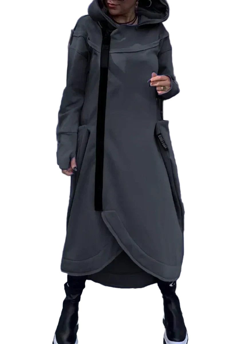 Transformirajte svoj izgled ovim dugim kaputom asimetričnog kroja i strukturirane kapuljače. Moderan dizajn spaja udobnost i urbani stil, savršen za one koji se žele istaknuti bez odricanja od praktičnosti.