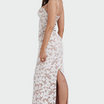 Elegantna maxi haljina od čipke s cvjetnim uzorkom koja ističe ženstvenost s elegancijom i bezvremenskim stilom. Tanke naramenice i prilagođeni kroj skladno obavijaju siluetu, čineći je idealnom za večernje izlaske ili posebne prilike. Prozirna tekstura čipke pruža osjećaj luksuza i romantike.
